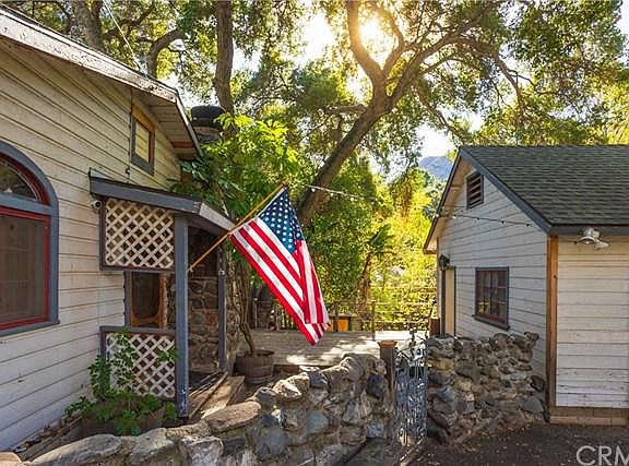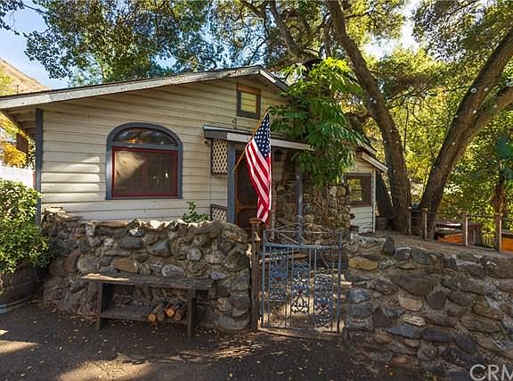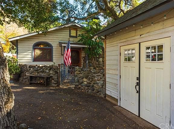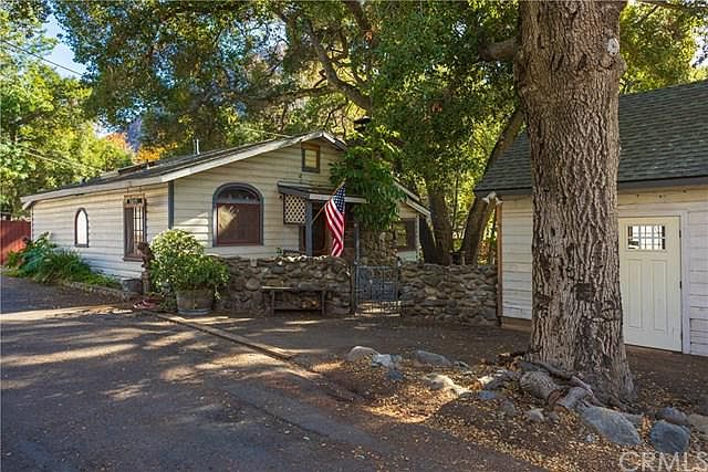 Gorgeous, quintessential, creekside home on a RARE double lot with a separate studio/workshop with a guest bedroom, closet and half bath. This single level home is one of the most charming you will ever see with knotty pine wood, slate flooring and a vintage river rock fireplace. You'll love the kitchen with beautiful cabinetry, soapstone counters, recessed lighting, a 4 burner wolf oven with griddle, double sink, pull-out pots and pan drawer and a pressed tin ceiling. The master bedroom is creekside and has a separate entrance leading to the outdoor spa. The second bedroom has a built-in loft and the third bedroom boasts a leaded glass window. Improvements include a dual split system for heating and air conditioning, the home was re-piped with copper 15 years ago and the roof was replaced about 6 years ago. A door with stained glass leads to the remodeled bathroom with a walk-in shower and old fashioned toilet with a wall mounted tank. The yard is divine with the sounds of water flowing in the seasonal creek, an ancient oak tree just begging for a tree house, a large grassy area and a wooden deck. The studio measures almost 400 feet and has tons of storage in the rafters. There is a fairly long driveway and two additional parking spaces. This historic, tranquil community with a laid back country vibe is just minutes from Irvine Lake, Jamboree and El Toro, but it's a world away from the stress and traffic of city life. Welcome home.