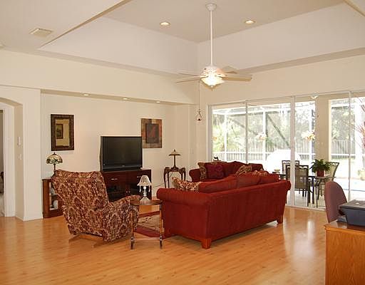 CUL-DE-SAC LOCATION means NO Traffic! Double door entry leads to the inviting Great Room with a picturesque view of the beautiful backyard. Combination Living Room-Dining Room is great for entertaining. Slider doors open up to the lanai area featuring a huge hot tub that can fit a dozen friends! The Master Suite is very large with room for a sitting area and also opens to the lanai. The Master Bath has a Garden Tub and two vanities. This abode is a split plan with 2 other bedrooms on the opposite side of the home, creating privacy for the owners. Nice Sized Kitchen has a breakfast bar and a Morning Room. Laundry Room and 3 Car Garage are convenient to the kitchen area and makes it great for carrying in the groceries! You'll love the size of the backyard which is fenced and has lots of room for games or just peaceful privacy. Located in a great neighborhood with community pool and tennis courts. Don't delay and call today!