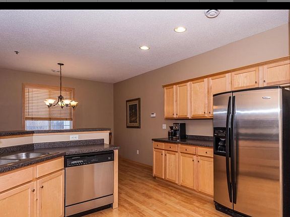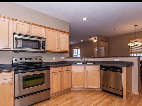 Desirable & hard to find end unit! This home features maple trim & cabinets, breakfast bar, laminate wood floors throughout the main, stainless steel appliances, washer/dryer, water softener. Double sinks in bath. Large 2nd floor den/off/family room area. Nice location overlooking natural prairie land. 2 car garage.