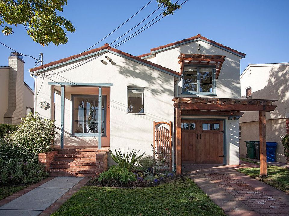 Experience Alameda's sought-after East End at its very best in this charming mediterranean bungalow. Situated across from Krusi Park & top ranking Otis Elem. Fall in love from the curb as the textures from the stucco exterior combine w/ the wood carriage garage doors, rustic pergola overhangs & brick accents, all leading you to the elevated porch & inviting you home. Enter to find the bright & open living areas, feat. gleaming wood floors; arched doorways; & a brick fireplace. Recently improved, the spacious kitchen is equipped w/ new wood counters & subway tile backsplash; freshly painted cabinets; stainless steel appliances; tons of storage; & a quaint breakfast nook w/ french doors to the rear deck/yard. Offering great separation & versatility with 2 beds/1 bath upstairs + a lower bonus room that can function as possible 3rd bed or bonus room. The well manicured yard has a large lawn & multiple fruit trees/succulents. Updated forced air heat! Open Sat & Sun. CHECK OUT VIRTUAL TOUR!