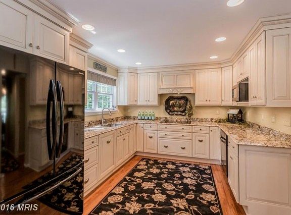 Impeccable curb appeal invites you to find refined interiors! KIT w/exotic granite counters, sleek black appliances & Medallion custom CABS w/pull-outs galore! Breakfast room stands adj to family room w/woodFP & access to elevated Trex deck overlooking backyard lined w/English Gardens & creek w/partially wooded backdrop! Owner~s suite w/WIC. FIN LL w/dark ceramic floors in rec room w/full windows!