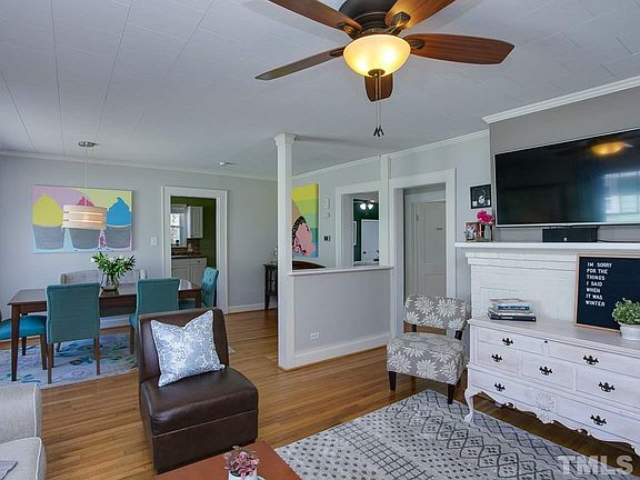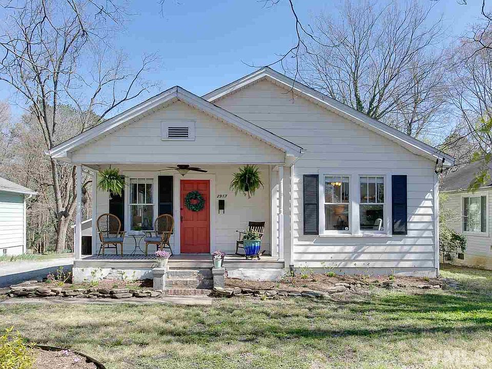 This charming three bedroom bungalow on half an acre is a beautiful retreat, minutes from downtown Durham. From the natural light that bathes the open living spaces to the refinished hardwood floors that span the entire home, this property exudes 1930s charm balanced by modern updates. Enjoy the NC spring while rocking on the covered front porch, grilling on the back deck, or relaxing around the built-in fire pit. All just a 5 minute bike ride from Fosters or a 9 minute spin to Beer Study!