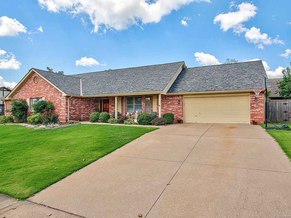 Wonderful New Listing in Colonial Estates. Step into the spacious foyer, immediately leading to the formal living room with bay window, overlooking covered front porch. The Formal living flows into the formal dining, which has a coffered ceiling, but shares the same updated bamboo flooring as formal living. The cozy den has a vaulted ceiling with white painted beams, and fireplace focal point. At the opposite end of the den is a built-in sewing nook, which could be converted for homework space, office, craft space - nearly anything! Kitchen has been upgraded with white painted cabinetry, corian countertops, and SS appliances. Half bath off utility room near garage. Primary bedroom is such a nice surprise. The room is oversized, easily accommodates larger furniture, and is accented with a tray ceiling. The private bathroom has separate shower, double sinks, and whirlpool tub. The primary bedroom's closet is just a delightful size - keeps going and going! If you enjoy savings, this home has many money saving features - such as the 50-Year Malarkey shingles installed in 2018, which save money with many insurance companies! Also the electric bill is rated by PSO to be 43% lower than the efficiency zone's upper limit - that is huge! You'll also enjoy the beauty of the bamboo flooring in the main living areas of the house, installed in 2019. There is so much to love about this Colonial Estates Beauty! Seller will consider flooring allowance for carpeted rooms. List of recent home improvements is available from your Realtor.