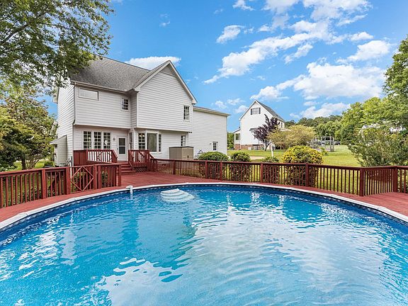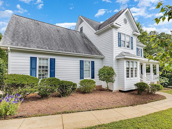 The advantages of this charming custom built home in Apex become apparent long before you go inside. The grilling deck and cool blue pool make a perfect combination of sizzle & splash. The expansiveness of the surrounding yard contributes to the recreational feel. Facing the rarely traveled street, the front porch is a nice spot for relaxing with a beverage & book. Rewards also await on the other side of the Welcome mat. Hardwood flooring in entryway, dining, and living room. The mostly neutral decor is likely to suit any taste, but also serves as a backdrop for your design vision. The kitchen offers granite countertops, island, tile backsplash, generous cabinet space, stainless dishwasher, microwave, & dbl sink. Breakfast area features bay/picture window with perfect pool view. Primary ensuite boasts walk in shower, transom window, garden tub, & walk in closet. Within walking distance to Crowder Park, & only a jiffy from shopping, dining, schools, & future 540, you'll spend more time at destinations (or at home) than in transit. New roof 2012. Walk up attic! 4th bedroom makes a great bonus! No HOA!