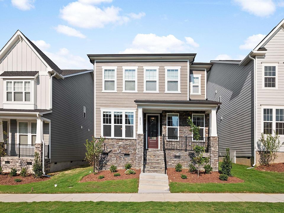 Beautiful single family home with 4 bedrooms and 3 full baths in Apex! Enjoy amenities in the neighborhood including swimming pool, clubhouse, parks, dog parks, playgrounds and soccer field as well as American Tobacco Trail access! All hardwood on main floor! Family room with fireplace is perfect for entertaining! Beautiful gourmet kitchen with quartz countertops, grey cabinets, large island, walk in pantry with wood shelving, tile backsplash, gas cooktop! Guest bedroom with full bath on main level! Primary bedroom with tray ceiling, walk in closet and luxurious bath. Loft is great for office/gym/playroom. Relax in the screened porch in the mornings or evenings! Great location just off Hwy 64, next to new Sweetwater shops/restaurants, close to major highways and freeways, downtown Apex, shopping, dining and entertainment!
