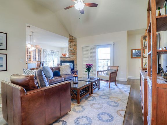 Classic in design this Hallbeck built condo with over 3000 square feet will fascinate and surprise at every opportunity. The restaurant quality kitchen featuring the top of the line 36" Viking gas range and Viking chimney wall hood, granite counters with grand prep space is every chef's dream. Beautiful engineered hardwood floors on the first level & the custom plantation shutters are stunning. The three sided stone fireplace is a real focal point and enjoyed by the seller those winter days. The master suite is complemented by a sumptuous master shower, and a custom walk in closet. One more bedroom on the main level. In addition there is a large family room in the walk out basement. Two more bedrooms, 3rd bath with a fully tiled shower and another soothing rain shower head. The office is being used for storage as there is an abundance of room throughout the home. Enjoy the south facing views overlooking the pond from the covered deck or the lower level patio. Professional Landscaping & retaining wall structures. The Villas at Greystone Lakeside Condos are ideally suited for a comfortable way of life. Guiding You Home!