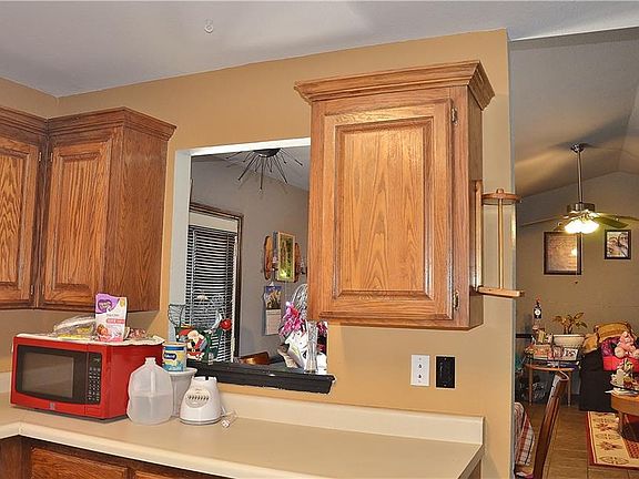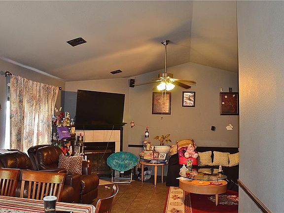 Very spacious and updated home with open floor plan and large bedrooms. Large living area with vaulted ceilings. Easy to care for ceramic tile throughout home. Updated lighting. Lots of storage space throughout, including over-sized closet in master. Very large backyard has a private feel with shade trees and deck with built-in seating. Storage building in backyard. Covered porch with garden area in front yard.
