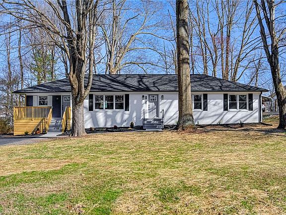 This home was transformed with a stunning remodel offering an impressive open floor plan on the main level and finished space in the basement. The design is perfect for entertaining with the spacious great room open to the beautiful kitchen with new cabinets, granite counters, tile backsplash, a large island & new appliances. Adjacent to this space is the huge den with gas-log FP. Primary bedroom was redesigned with barn-door closet with organizers and an ensuite bath with new tub/shower and double vanity. Second and third bedrooms share a bath with new vanity and new tile shower. Throughout the main level, there’s new easy-care luxury vinyl plank flooring, new lighting, and fresh paint. Basement features two rooms that can meet many needs and lots of great storage space. There's also a large main-level laundry, fenced back yard with a play house, storage building, & garden space. It's convenient to shopping & restaurants and an easy drive to Winston-Salem, Kernersville, or Greensboro!