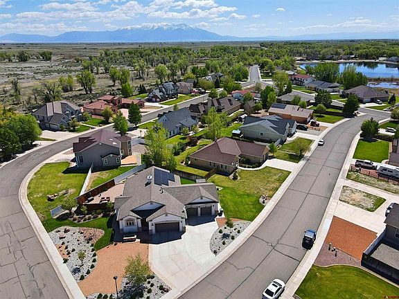 Welcome to this stunning 3 bedroom, 2 1/2 bath home located on a roomy corner lot with beautiful mountain views. This property boasts four heated garage spaces, perfect for all your vehicles and storage needs. Enjoy plenty of outdoor entertaining space, including an enclosed sunroom and beautiful landscaping that blooms year after year. The home features a owner owned solar system and a roomy crawlspace with moisture lining and a vented system for added efficiency. Inside, you'll find an inviting open floor plan with elegant granite countertops, sleek stainless steel appliances, and vaulted ceilings. The spacious master bedroom offers double doors to the enclosed sunroom and the master bath offers double sinks and a luxurious soaking tub. Additionally, there's a convenient jack and jill setup for the other two bedrooms, providing privacy and functionality. Situated on a corner lot, this home is truly a gem in a picturesque location near the Great Sand Dunes. Don't miss out on the opportunity to make this your own slice of paradise!
