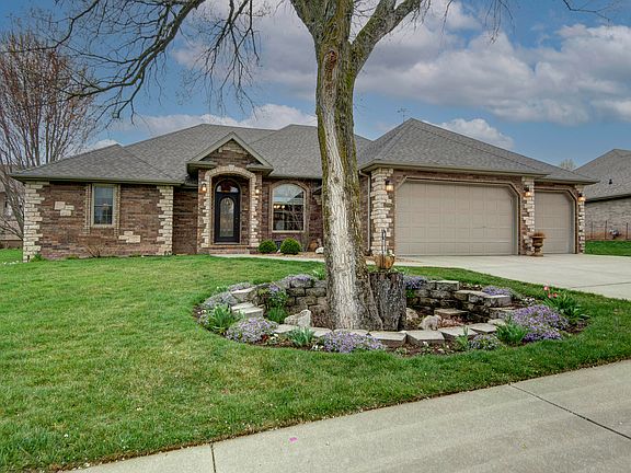 BEAUTIFUL, Meticulously Cared-for Semi-custom 2,694sf Home in popular Ozark Heights with amenities offers a refreshing layout & welcome first impression from curb-to-Kitchen. Conveniently located 9.3mi to Cox Hospital & Medical Mile, 1.8mi to CoxHealth Urgent Care, 2.4mi to Ozark West Elem, 3.5mi to Ozark JH & 3.9mi to Ozark HS. Price Cutter, Billy Gail's & Lamberts 2.6mi, Finley River Park 3.8mi & downtown Ozark, Nixa, Walmart, Lowes & many area restaurants within 4.3mi. UPON ENTERING this BEAUTIFUL HOME enjoy the expansive Foyer from which beautiful ceramic tile meet gorgeous hardwood floors & open sightlines create a welcome sense of balance & comfort. This IMMACULATE HOME features a well-appointed Spacious Kitchen with 16x16 ceramic tile floor with custom design, generous granite counterspace for prep work & plentiful cabinet storage including Pantry. Includes Stainless Steel Kenmore Elite appliances, large Kitchen Breakfast Bar & spacious Kitchen/Dining Combo with bay window & adjacent access to large outdoor covered patio for additional living & entertaining space. Primary Bedroom is private, attractively designed & spacious retreat with 5-Fixture Ensuite featuring two vanities & sinks, standup shower, jetted tub, private commode, linen closet & generous well-equipped walk-in closet with inviting natural light. Formal Living Room features high ceiling, crown molding, large windows, transom windows & sliding patio door. Feature corner Gas Fireplace anchors this space accented by a beautiful wood mantel, wood & tile surround, tile hearth & generous living space with smart & stylish purpose for intimate & larger gatherings. Large windows brighten this home throughout with abundant natural light & provide sightlines throughout of the beautiful outdoors & exterior landscaping. Decorative window shades, sheer shades & Hunter horizontal blinds adorn newer Pella windows with style creating a clean, distinctive look while providing variable light control & helping