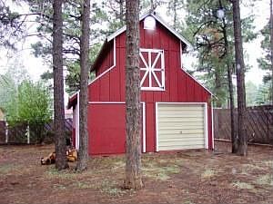 Great little home with fabulous work shop/storage building. This Flagstaff home has hard wood flooring in living room and bedrooms. Wood-burning fireplace. Large, eat-in kitchen. Separate laundry room with large storage cabinets. Property is zoned Community Commercial so has potential for home-based business (buyer to confirm zoning is suitable for particular plans). Fabulous two-story workshop building has plumbing, electricity and insulation. Overhead door for easy access and parking vehicle. Rear yard is fenced (beware of dogs during non-authorized showing hours) and front yard has decorative fence. Natural gas furnace and hot water heater, newer dishwasher. Cul-de-sac location.