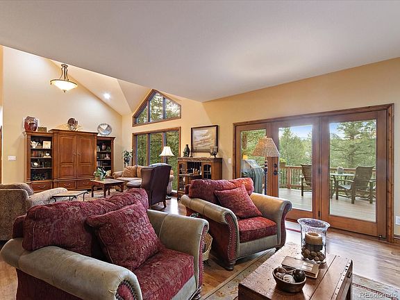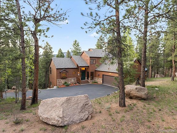 IMMACULATE REMODELED HOME INCLUDES THE POND. Enjoy the Plentiful Wildlife & Mountain views in on this stunning 3.3 acres with mature trees, rock outcroppings and small creek with a private pond. Totally updated the main level boosts Knotty Alder doors, molding and cabinetry, Granite, and custom 5âEUR plank hardwood floors, Gourmet kitchen including a large center island, gas cooktop, double convection oven, side by side refrigerator, drawer microwave, large walk in pantry, and large breakfast nook. Off the foyer, the sitting room could be another eating area, a great room with gas fireplace, vaulted ceilings, and access to partially covered Fiberon heated deck. Master retreat, includes plantation shutters, updated & upgraded bath with heated tile floors, walk in closet and double vanity and makeup counter. Upstairs includes full bath and 2 spacious bedrooms and loft library/office with handcrafted built in bookcases. The newly finished walk out basement features lots of windows & natural light, a second great room, 1 large bedroom, full bath, laundry room and ample storage. Woodside Park Subdivision has Horse/hiking trails throughout the park, and equestrian center located a just up Nova Road, offers a training round pin, pasture, stalls available to rent in the barn for $75/mo. Great way to have your horses close and separate from your property. Conveniently located less than 2 miles to Hwy. 285, and public transportation and RTD Park and Ride. Straight shot to Denver and less than an hour to Breckenridge Ski Slopes, If you want to own your own little piece of the Colorado stop looking. Rare opportunity to own this property that offers a year round creek, pond, and privacy. Yet, only minutes to shopping, dining, and schools. Close and move in as quick as you want. No Seller Contingencies or Post Occupancy. An Immaculate Home in an Exceptional Mountain Setting. This could well be the one you've been waiting for!