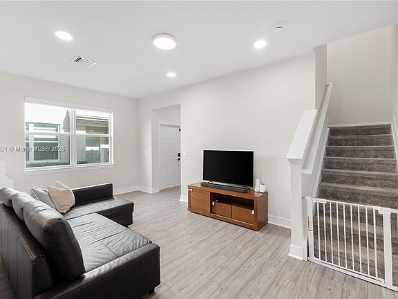 Welcome to this 3-bedroom, 2.5-bath townhome with 1,547 square feet under AC of thoughtfully designed living space. The property is a corner unit offering enhanced privacy and generous natural light. Never rented and meticulously maintained, this residence combines modern elegance with family-friendly functionality. The home is upgraded throughout, featuring stunning grey quartz countertops, crisp white backsplash, and elegant white cabinetry. Luxury vinyl flooring flows through living areas for easy maintenance, while plush carpet in bedrooms ensures quiet comfort. Impact windows for peace of mind and energy efficiency. The open-concept first floor includes a kitchen with stainless steel appliances, and a convenient powder room. The upstairs is a private sanctuary: three spacious bedrooms, two full baths, and an oversized family loft perfect for play areas or home office. The laundry is conveniently located on the bedroom level. The primary suite features a luxurious bathroom with glass shower and modern tile work. The 2nd and 3rd bedrooms offer serene lake views and the windows flood spaces with natural light. The backyard overlooks tranquil lake vistas ideal for weekend barbecues and outdoor entertaining. The two-car garage provides ample parking and storage. Ideally located near grocery stores, shops, parks, and schools everything your family needs within reach. Fully child-proofed with WiFi extenders and safety features already installed. Can be rented furnished.