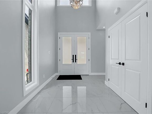 Welcome to 2917 Petty Road, a truly stunning 2-Storey home nestled in South London. This exceptional property offers a perfect blend of modern convenience and elegant living, with easy access to highways and a host of amenities just moments away. Inside, you'll find 4+1 spacious bedrooms and 3 1/2 bathrooms. The fully finished basement is a versatile space, complete with a separate entrance, making it ideal for a potential granny suite or a private living area for guests. The home is adorned with numerous upgrades, including high ceilings that add an airy and open feel to the living spaces. A gas line for both the BBQ and stove adds convenience to your culinary endeavors. The built-in entertainment shelving adds a touch of sophistication, while the full-height kitchen cabinets with under-cabinet lighting create a warm and inviting atmosphere. Step outside to discover the delightful features of this property. The covered rear concrete patio offers the perfect spot for relaxing and entertaining, while the covered front porch provides a welcoming entry to your abode. For those who cherish outdoor views, the second-floor balcony with railings is sure to impress. Luxury awaits underfoot, with engineered wide plank hardwood flooring on the main and upper floors, exuding elegance and durability. In the basement, you'll find luxury vinyl plank flooring that combines style with easy maintenance. The attention to detail is evident throughout, with custom mudroom cabinets for organized storage and a laundry room conveniently located on the second floor. Practicality meets aesthetics with an over-sized concrete driveway, providing ample parking space for you and your guests. The extra deep backyard is perfect for gatherings or peaceful relaxation. The basement's potential granny suite is further enhanced with a rough-in kitchen, second laundry hookup, a well-appointed 3-piece bathroom, an additional bedroom, and a den, offering comfort and independence.