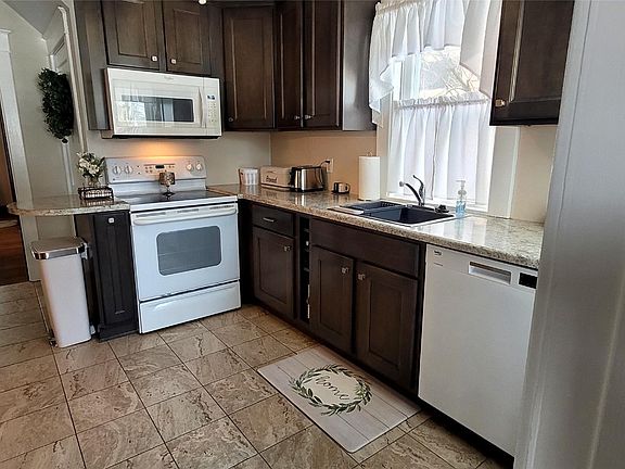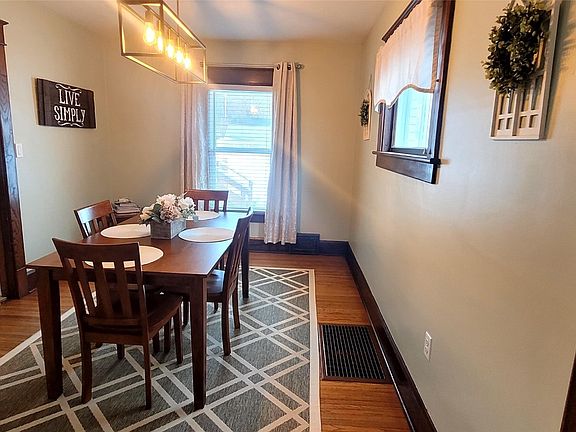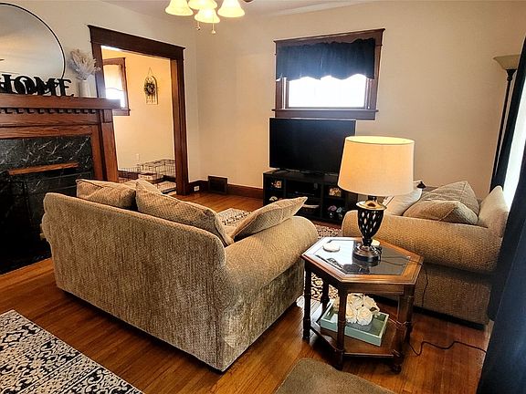 Charming 3 bedrooms 2 bath home with beautiful hardwood trim & floors! Foyer leads to freshly painted living room with decorative fireplace, formal dining room, remodeled applianced kitchen with mudroom to the deck & fenced backyard. 2 updated baths, newer furnace and hot water tank, updated electric. Come relax on the covered front porch!