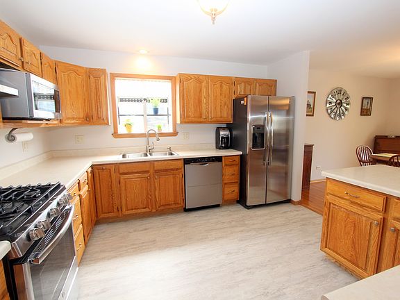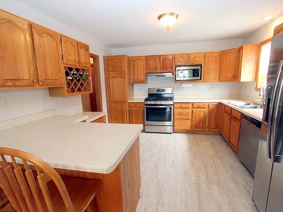 Wonderfully maintained home on 5 acres with 56 x 32 outbuilding! Ideal for horses, hobbies or storing toys. The home has been updated with fresh paint, new carpeting, luxury vinyl plank flooring in kitchen, entryway, bathrooms and recently renovated main floor bathrooms complete with modern illuminated mirrors and custom-made tall vanities. Just move in! The spacious kitchen has been recently improved with new sink, faucet, stainless appliances, wine rack and the ample oak cabinetry was refurbished and features a breakfast bar and table space with slider out to the great deck. Host barbecues with friends under the pergola or paver brick patio while enjoying the nice open view of the 5 acre lot. During cold months, move your parties to the family room in the basement and warm up in front of the wood burning fireplace. 3 bedrooms and 2 full baths on the main floor plus another full bath and bedroom as well as plenty of storage room in the basement. Don't miss out; make it yours today!