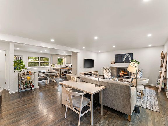 Welcome to your Long Beach escape! Perfectly positioned near Stop 29 and Stop 30, just moments from the sandy shores of Lake Michigan, this 4 Bed/3 Bath raised ranch blends mid-century charm and coastal comfort. Step inside to an inviting open floor plan where a beautiful gas-insert fireplace welcomes you home. The living room flows effortlessly into the dining area and updated kitchen featuring concrete countertops, sleek modern cabinetry, glass tile backsplash, and high-end stainless steel appliances, including a slide-in gas range, range hood, built-in dishwasher, refrigerator, and convection microwave. Enjoy your morning coffee on the screened-in porch, spend your day at the beach, then unwind in the evening with a glass of wine on the spacious back deck or flagstone patio surrounded by lush landscaping and a well-manicured backyard. Main level offers a serene primary suite with a private glass shower, plus two additional bedrooms and a full hall bath. Downstairs, discover a cozy family/recreation room with a second gas fireplace, perfect for movie nights or game days. A bonus 4th Bedroom provides extra room for guests, complemented by a third bath and a finished laundry room. Outdoor living shines here with a front flagstone patio and fire pit overlooking the neighborhood, a secluded outdoor beach shower to rinse off after a lake day, and a built-in garage for convenience. From sunrise strolls to sunset cocktails, this Long Beach home invites you to live every day like you're on vacation with both Lake Michigan & Long Beach Country Club right down the street.