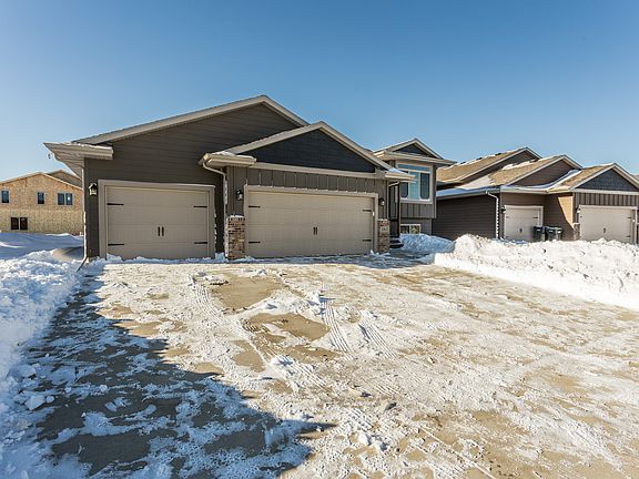 Beautiful Newer Home built in 2017 located in a popular West Side Sioux Falls Neighborhood! This home offers 3 bedrooms, 3 bathrooms, and a 3 stall garage! Main level offers an open floor plan for easy entertaining, vaulted ceilings, and warm inviting paint colors! Kitchen offers beautiful cabinets, kitchen island, beautiful black stainless steel appliances, a walk-in kitchen pantry, & a dining area with a door to the covered deck! Spacious living room with big windows on the main letting natural light in. Master bedroom has a master bathroom and walk-in closet. Bedroom 2 has a double closet. Lower level offers a large family room, the 3rd bedroom, and a nice sized bathroom. Family room is finished with a beautiful accent wall and a touch of modern downstairs with the large sliding barn door, awesome open ceiling concept, and stained concrete floors!