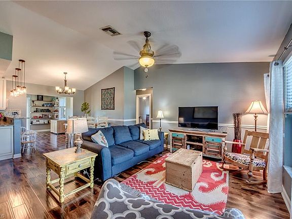 You'll fall in love with this charming and newly refreshed 3 BR/2 BA Country Club Cape Coral home! From the open and bright vaulted living area to the vast fenced-in privacy of your backyard, there is plenty of room for your family to enjoy. Fresh paint, gorgeous wood laminate flooring, beautiful updated kitchen with granite, bonus room/den, brand new auto garage door opener, in-home laundry with ample storage, push up Levolor blinds. Roof, water heater, washer / dryer are only two years old and this home has all assessments paid in full. This is a must see home for privacy and price with easy access to shopping, restaurants, schools and easy access to Fort Myers! Don't delay schedule your showing today!