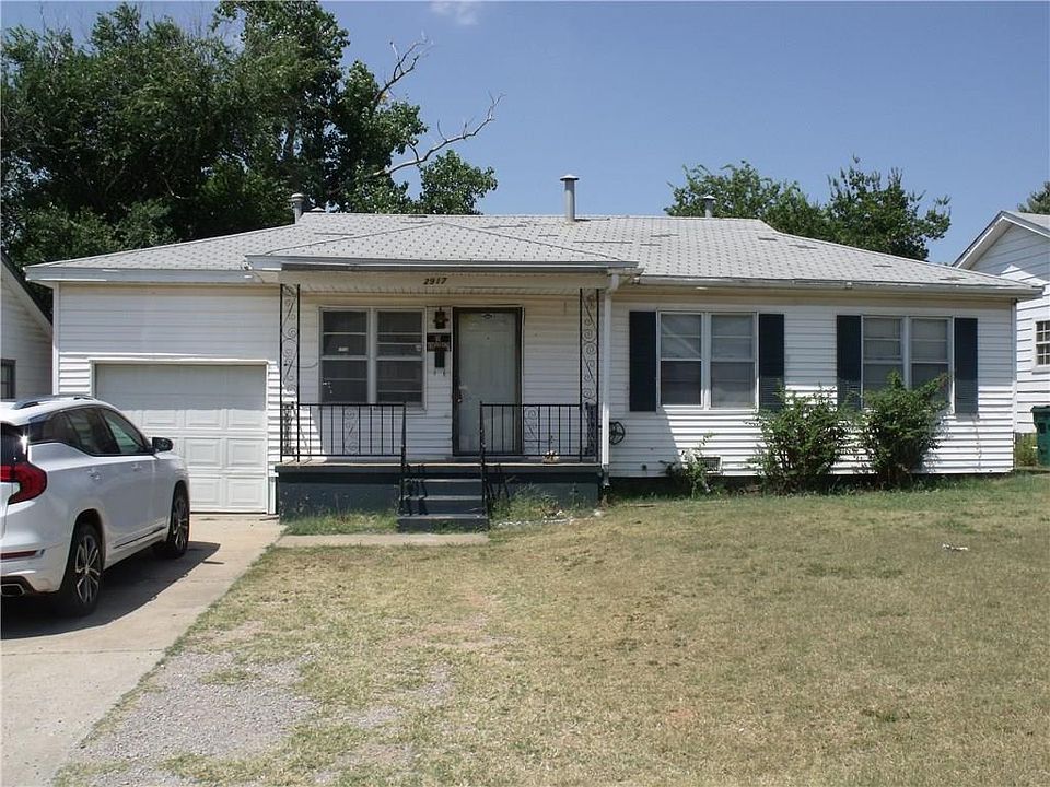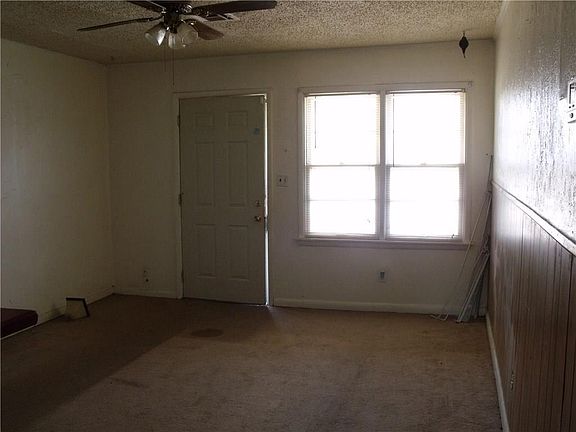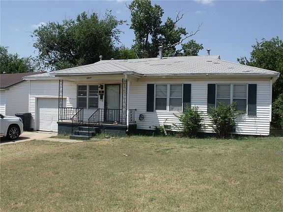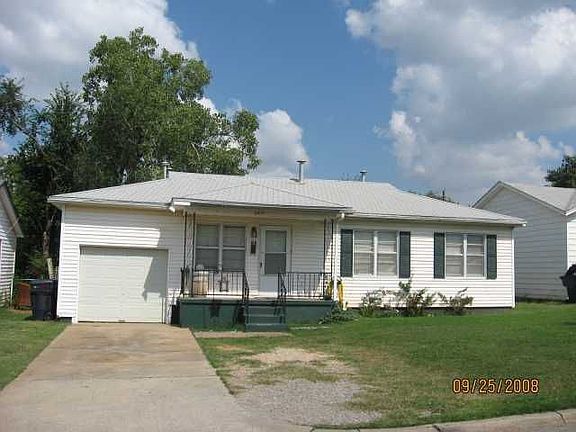 Cute little fixer with 3 beds, 1 bath, 1 car garage and large backyard with large deck and storm shelter. Has central heat and air, comes with frig. Patio deck is 14 x 19, storm shelter is 10 x 11, garage is 10 x 25. Bathroom has nicely updated tiled tub/shower, pedestal sink and newer toilet. All bedrooms have ceiling fans. Exterior has vinyl siding. Convenient location. Hardwood floors under carpet.
