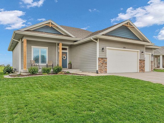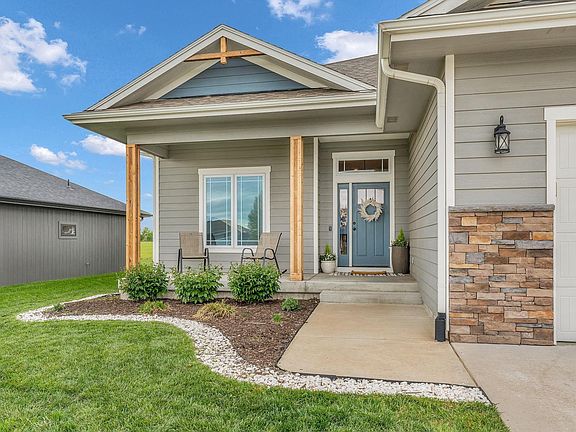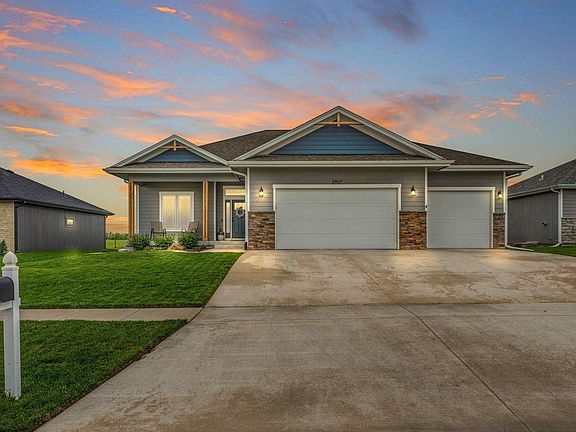 Beautiful 6 year old home just west of town in the Greenridge Estates neighborhood. As you walk in you are greeted with an open floor plan, an abundance of natural light, and large windows that draw you outside to the covered patio. The house has an ideal ranch style layout with 3 bedrooms on the main, the primary bedroom on it's own side, and main floor laundry. The stunning kitchen offers granite countertops, custom cabinets/backsplash, stainless steel appliances, and an oversized pantry. You'll love the large primary bedroom with an en suite featuring a beautiful tile shower. The basement gives you a family room, two nice sized bedrooms, a 3rd full bathroom, and more storage than you can imagine! Plenty of size in this home with over 4,000 total sq ft, 3119 finished. Other desirable features include; 3 car garage, mudroom, high/tray ceilings, oversized closets, two covered patios, and beautiful backyard views. Conveniently located in the Washburn Rural school district, just across from where the new middle school is being built, don't miss out on this rare opportunity!