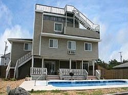 Updated 3 story deep water front 7 bedroom beach house; 1 block to ocean, roof top deck w/tiki bar, inground pool, near historic False Cape Park, surfers delight, great permanent residence, second home or vacation rental investment opportunity.