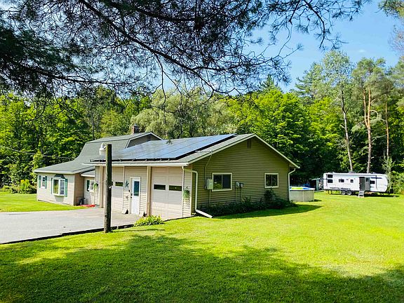 In the Town of Coventry you will find this Country Gambrel sitting on 1.70 private acres with a year around brook in the back yard. And what a back yard it is! It's deep, private and flat making it useful for everything you want a back yard to be. The home needs nothing! 3 bedroom with 2 baths which both have been updated. There is space for everyone. The kitchen is modern and efficient. There is a large dining area/living room and these owners have converted a first floor den into another bedroom which works well for them. There is another bedroom on the first floor and two bedrooms upstairs. The basement is full, dry and usable. There is an oversized deck off the living room that leads to the above ground pool and a hot tub. The furnace is modern and the house is also plumbed to use propane as a secondary heat source. There is no electric bill at this home because of the net metering that the solar panels provide. Coventry is the land of low taxes and school choice. There is also no charge for garbage. There are many other community incentives that Coventry provides for its residents. If you are in the market for a better than average home with low carrying costs and in a community that cares for its taxpayers, then this is the property for you.