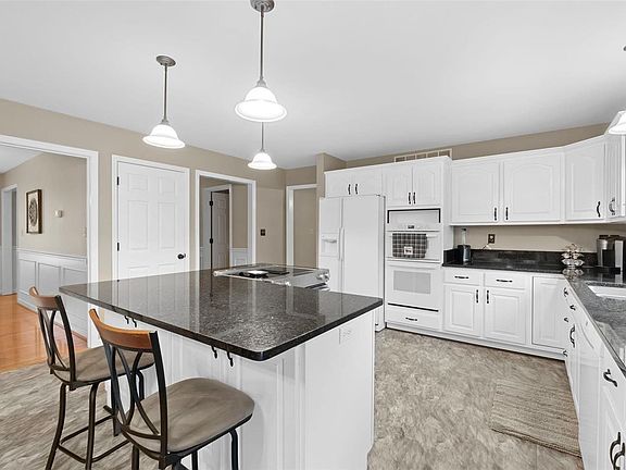 Private Paradise waits for you! 4 Bd/4Ba, 2-stry home on just over 3 acres. Lge covered porch welcomes you into formal living or dining room where wood floors & custom white paneling surrounds the room. Family sze Kitchen features Center Island, White Custom Cabinets & Granite Cntertops. From Brkfast Area, French Doors lead you into a Serene Family Room; Great Room has Wdburning Fplace & hge Bay Window overlooking private backyard. UL Mster Suite leaves nothing to be desired w/Vaulted Ceiling, extension for Den or Exercise Room, his/her walk-in closets, Mstr bth w/whirlpool tub & sep shower; 3 add'l bedrms & full guest bath also on UL; Walk-out Basement has open floor plan w/huge Rec Room complete w/Bar, half-bath, & room for storage in unfinished area. Lge Main Flr Lndry. Oversized Side-Entry Garage w/Epoxy Flooring & bump-out for Wkshp. 30X28 Outbuilding w/electric. Maintenance free Composite Deck off Kitchen, plus your own private wood sundeck. Don't miss out on your paradise!