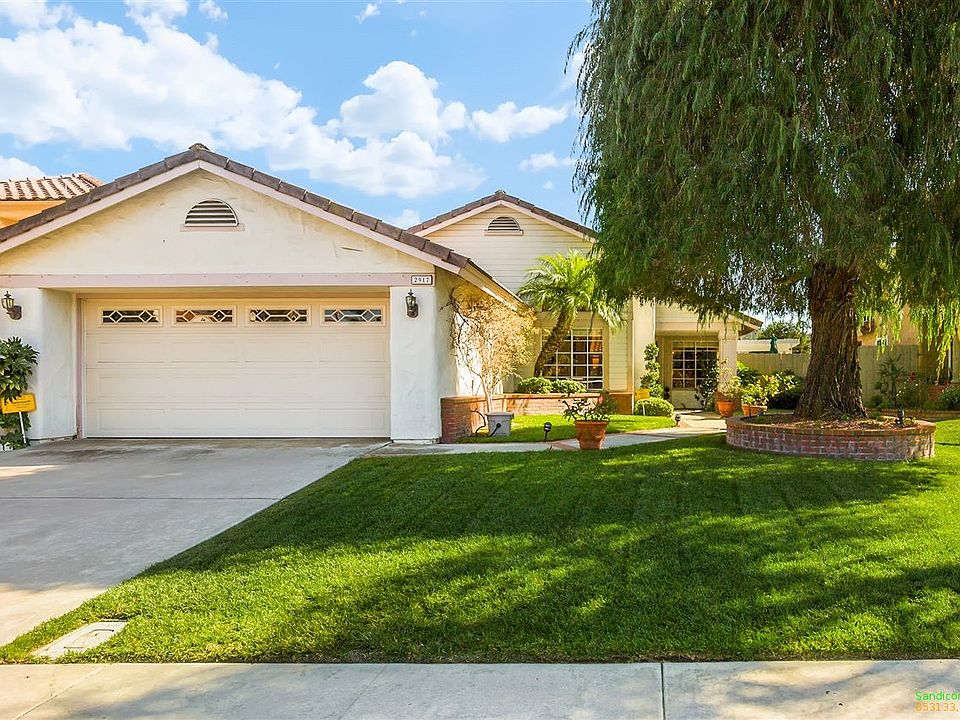Offered in the value range of $799,900-$829,900: Welcome home to this charming single story home featuring wood floors, soaring beamed vaulted ceilings, separate living and family rooms, a dining area perfect for all your gatherings and a cozy fireplace. The kitchen provides plenty of counter and cabinet space, an eat-at island and overlooks the family room for ease of entertaining. All bedrooms are good-sized and provide room for all. To top it off, the backyard offers a large partially covered patio and mature landscaping creating a serene oasis. Located within the community of Santa Fe Ridge in Carlsbad, you won't want to miss this one!