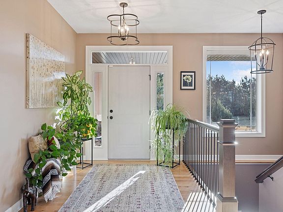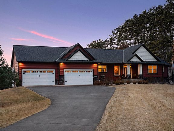 Better than new! Tucked away on 6.7 wooded acres, this stunning rambler offers the perfect mix of privacy, luxury, and space. With an 8-car heated garage, there is plenty of room for vehicles, hobbies, or storage. Walk into an open and bright layout that highlights the beautiful views. The kitchen features granite countertops, soft close doors and drawers, a corner pantry, and brand-new lighting. The finished lower level is built for entertaining, complete with a spacious family room and pool table. The professionally landscaped front yard adds curb appeal, and the in-ground sprinkler system ensures a green yard all summer. Head outside and enjoy the fully fenced backyard and fire-pit area. Watch breathtaking sunsets from the massive back deck. Relax in the Jacuzzi, play in the yard or swim in the pool, there is something for everyone here. This home is truly move-in ready. If you’re looking for a private retreat with high-end finishes and plenty of space to enjoy, this is it!