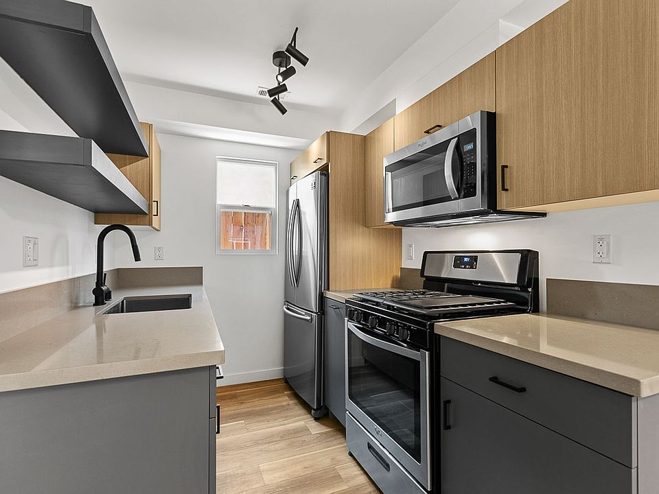 The Hauser Havens Apartments will take you back to the 50's, but with a completely reimagined modern day living. The entire property was thoroughly remodeled with gray exterior stucco, modern mosaic tile and pops of bright pink that will make you look twice. The grounds have been planted with lush green grass, lemon and lime tree and succulents. Every detail was thought through for todays living by providing a secured property with gated entry, intercom and cameras throughout. There is a common patio space for all to enjoy with lounge seating, dining table, sails to protect you from the heat of the sun, cafe lights and a gas grill to BBQ for everyone to enjoy! The completely modern kitchen has been beautifully finished with matte gray and wood grain cabinetry, grey quartz countertops, matte black hardware and plenty of lighting. There is plenty of cabinet storage for all of your kitchenware and floating shelves to add more character. The stainless-steel appliance package includes a side-by-side refrigerator, stove, floating microwave and dishwasher. The bathroom has a modern feel with natural stone flooring, different shades of penny tile, matte black hardware and a vanity that's features extra storage. Whether it's a hot summer day or a cool LA night. The nest-E thermostat is there to save the day! Location, location ,location Several blocks from the La Cienega/Jefferson Metro Line. This has the ability to take you to Santa Monica, DTLA and various destinations in between. Convenient distance to Culver City, Mid-City and various other cities in LA. If you prefer to drive, you have easy access to the 10 freeway. Close distance to Target, Starbucks, Ralphs and various restaurants along W Adams Blvd. *Photos may be of similar unit.