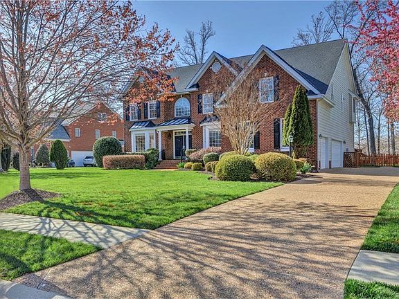 Beautiful brick front, Bradford Grand plan in popular Tarrington on the James. This five-bedroom home offers an open floor plan including gracious formal rooms, two-story family room and a private office. A Chef's kitchen with tons of cabinet space, a center island, wall ovens including an advantium oven, and a sunny breakfast room make this kitchen perfect! You'll also find granite countertops, a wine cooler and lots of space for entertaining! The sliding door will lead you out to a flat, fenced rear yard with wonderful landscaping, deck, patio and fire pit. The second level offers four spacious bedrooms. Master has a tray ceiling, a private sitting area and the master bath has granite countertops, jetted tub, and a separate tiled shower. The third level makes a great fifth bedroom or media room. You'll also find a full bath on this level and walk in storage. Highlights include lots of hardwood floors, crown molding, second level laundry, and large mudroom off of the three-car garage. Too many features to list! Tarrington offers world class amenities including pool, clubhouse, sidewalks, streetlights, and river access. Convenient to 288, shopping, schools, hospitals, etc!