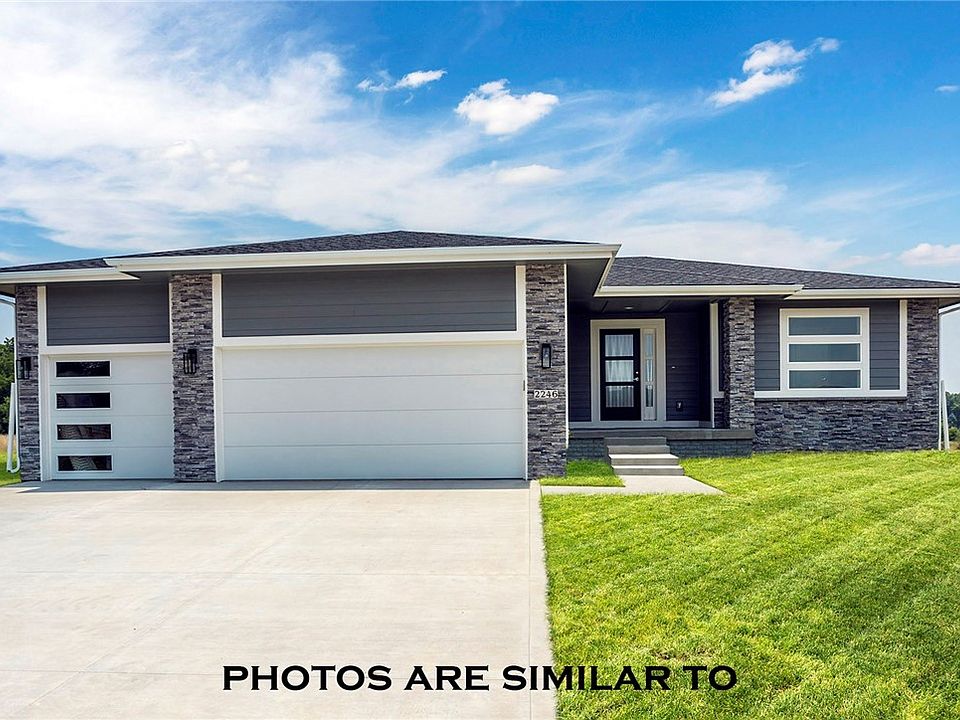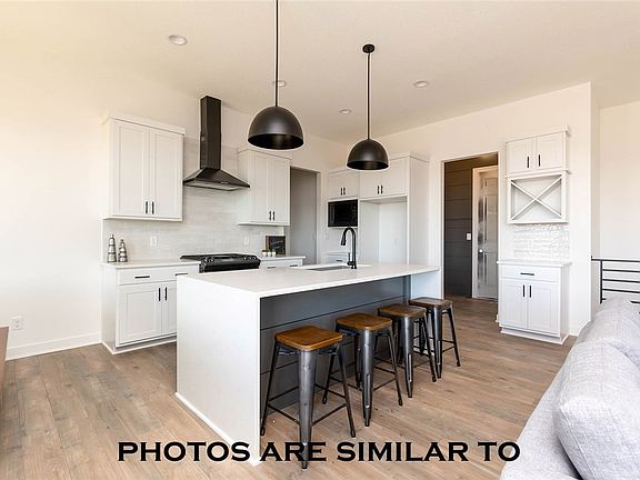 WOW! You're going to love all of the executive features in this Contemporary Vienna Ranch Plan by Orton Homes! Stylish exterior features James Hardie siding + beautiful stone accents. Full glass front door opens to 9 ft main level ceilings, 8ft tall windows for tons of natural light, modern electric fireplace & custom metal stair rail. Impressive kitchen showcases quartz waterfall edge island, upgraded cabinetry, gas range & hood vent + large walk-in pantry. Main level has 3 bedrooms including owners suite with tiled shower and freedomrail closet, laundry room and great mudroom area. Lower walk out level is ready for fun with triple plate ceilings, wet bar, large gathering room, 2 additional bedrooms and a full bathroom. Irrigation and radon pre-plumbed. Pictures are "similar to" and not an exact representation of the finishes for this home. Please contact a Realtor for finish details. All information obtained from seller and public records.