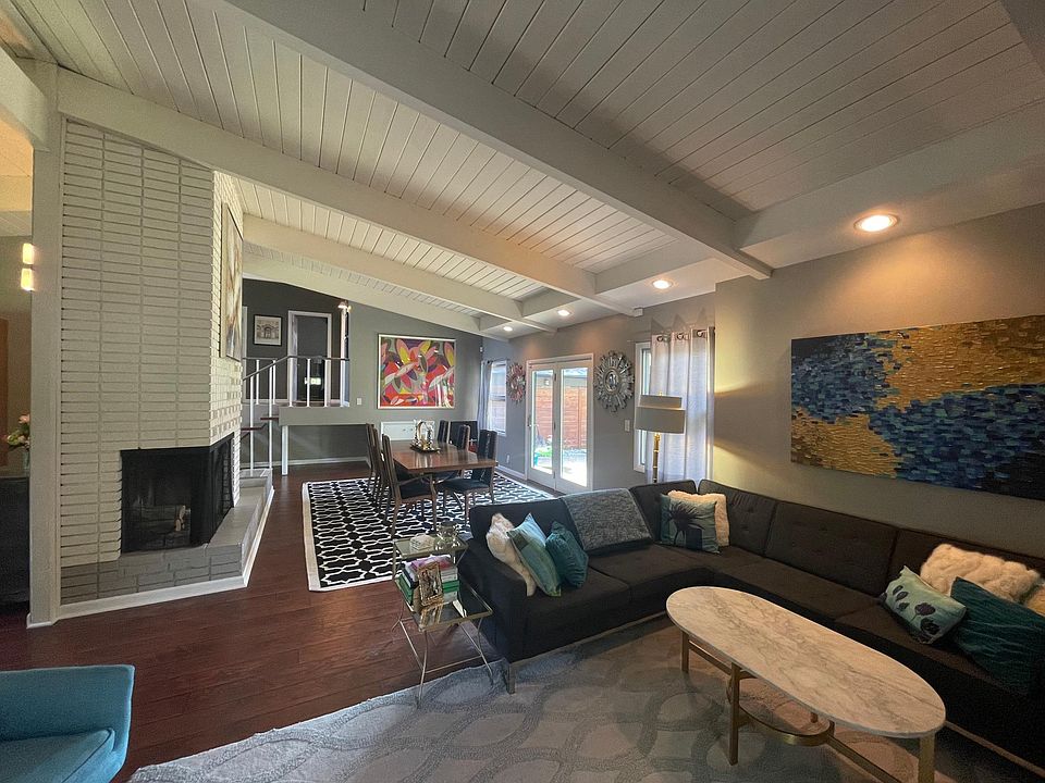 Midcentury duplex home with 3 bedroom, 2 bath with roughly 1850 sq. ft on one side and 2 bedroom 1 bath with roughly 1250 sq. ft on the other. Each side has a garage and both sides have been updated.