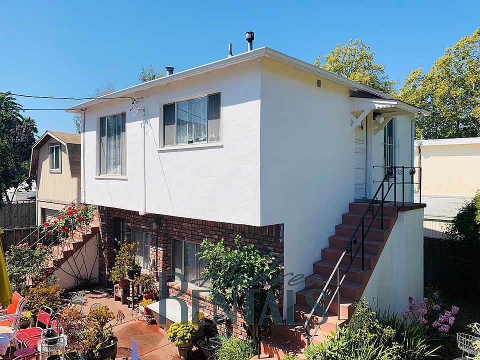 Sweet, peaceful 1 bedroom + small office in well-kept rear duplex. All utilities except internet are included in the rent. Fantastic Berkeley flats location, just four blocks to Ashby BART. This is the upper unit of the duplex, and it's the rear house on the property, with a sweet shared patio and flowering garden that separates the two homes. It's a nice community of long term tenants. From the entry stairs on the right, you step into the sunny kitchen with vintage tile and gas stove, plus small table for 2. There's a small room off the kitchen, perfect for a home office, that looks out over the rear garden. From the kitchen, a doorway leads to cozy living room, with a large front window and 2nd doorway to the outside. The sunny bedroom is off the living area and has a large window overlooking the backyard. The central hall bath has a shower over tub. Awesome location: tucked into a quiet, shady block but in the center of everything. Four blocks to Ashby BART station and the Berkeley Bowl. 6 blocks to the awesome weekly Adeline Farmer's Market and local favorite bakery Sweet Adeline. Super easy trip by bike, bus, or foot to almost anywhere in Berkeley. Available now. No pets, sorry. ALL UTILITIES (water, garbage, and PgE) are included in the rent. There's shared coin-operated laundry on-premises Sweet, shared patio and yard with bike parking and sunshine. Showing by appointment only. Please email to take a look, and tell me a little about yourself! Servane Valentin BRE: #01999256 AndreaRentals: A Rental Concierge for Bay Area Owners and Renters Owner pays for all utilities, tenant is responsible for internet/cable