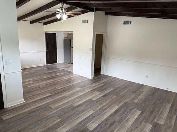 Beautifully renovated midcentury modern home in a quaint mature neighborhood. You will love this home with large windows that let in all of the natural light into the spacious living area with exposed beams. Off of the living area is an eat in dining area with a well laid out kitchen with stainless steel appliances. Down the hall you will find your primary bedroom with exposed beams and its own private bathroom. Two other ample sized bedrooms are also down this hall. To add to the space there is a second den that could be used as an office and also a sun porch out back.