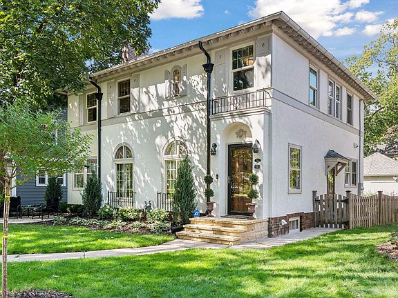 Stately Italianate home in the Sunset Gables neighborhood of Minneapolis. Breathtaking remodel, completed by Cedar Design Build in 2022. Attention to detail and respect for the home’s original character are reflected throughout the property. Beautiful hardwood floors throughout the main level. Living room with arched windows, built ins and doorways. It also features a gas fireplace. The sunroom is bright and cheery and makes a great home office. Large dining room with French doors to access the rear patio and back yard. Center Island kitchen includes Décor custom cabinetry, quartz countertops, tile backsplash, Thermador appliances and reverse osmosis water filtration system. A charming powder room rounds out the main floor. Bright upper-level landing with curved built ins. Primary bedroom with attached enSuite and walk in closet. Primary bathroom features heated tiled floors, double vanity with quartz countertops and tiled walk-in shower. The second level offers three additional bedrooms and full hall bathroom with heated tile floors, custom vanity and Waterworks plumbing fixtures. Lower level includes family room, 5th bedroom (currently used as a workout room), ¾ bathroom, laundry room and utility and additional storage. Two car detached garage and fully fenced backyard. All new landscaping and lawn irrigation added. Close to trails, the City Lakes, shopping and restaurants.