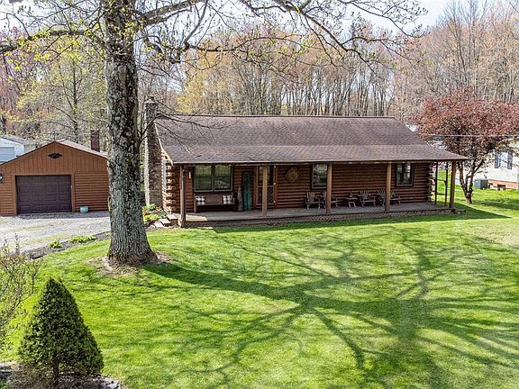 Welcome home to this idyllic 2 bedroom rustic cabin in a country setting. This home has been beautifully maintained and is turnkey ready for its new owners. Before even entering the home you'll be able to picture yourself relaxing on the large front porch. As you walk in, you'll love the open concept flow from the living room through to the dining area and kitchen and the spacious feeling that the vaulted ceilings give. Both bedrooms are spacious and the full bathroom just completed renovations including a tile shower. Walking on the back deck, you'll see a sitting area with a wooden swing with a view of the property. The detached garage includes a workshop room with a wood burning stove. There are multiple additional structures on the property including a shed and barn on the over an acre of land. This family built home that has housed multiple generations is being listed on the market for the first time so don't miss your opportunity to make this your new home.