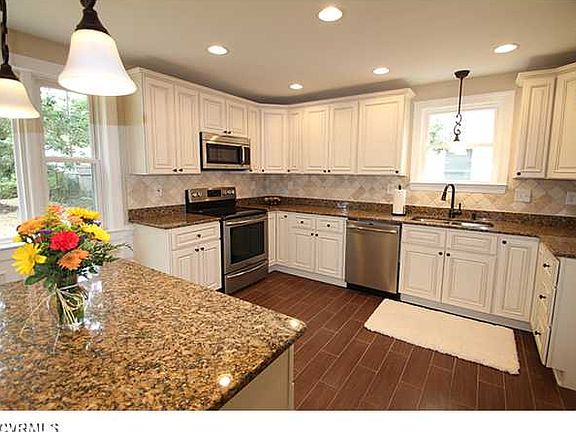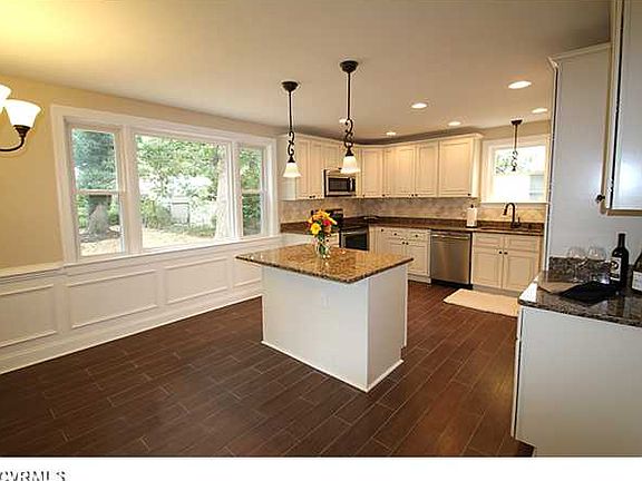 Beautiful 4 bed/3 bath w/approx. 2240 sq ft, including an enclosed finished side porch and 1st & 2nd floor rear addition. Beautifully renovated to include a large master suite w/his & her closets, gorgeous master bath w/a jetted tub, tiled double shower, large double-sink vanity & a separate powder vanity. Three full baths w/ceramic tile flooring, dining room w/chair rail and picture frame trim, newly refinished HW flooring, new dual zone central A/C/electric heat pumps, new roof with dimensional 30 year shingles, laundry closet w/new washer/dryer hookups, new upgraded kitchen cabinets w/granite counter-tops and island, new stainless appliances including a convection oven & convection microwave, new ceramic tile floor, new carpet, new exterior & interior paint, 1.5 car detached garage!