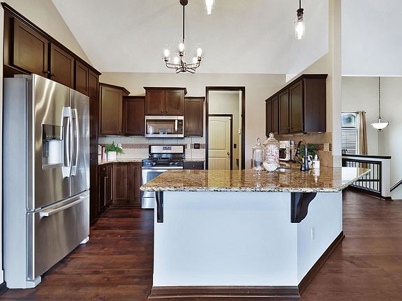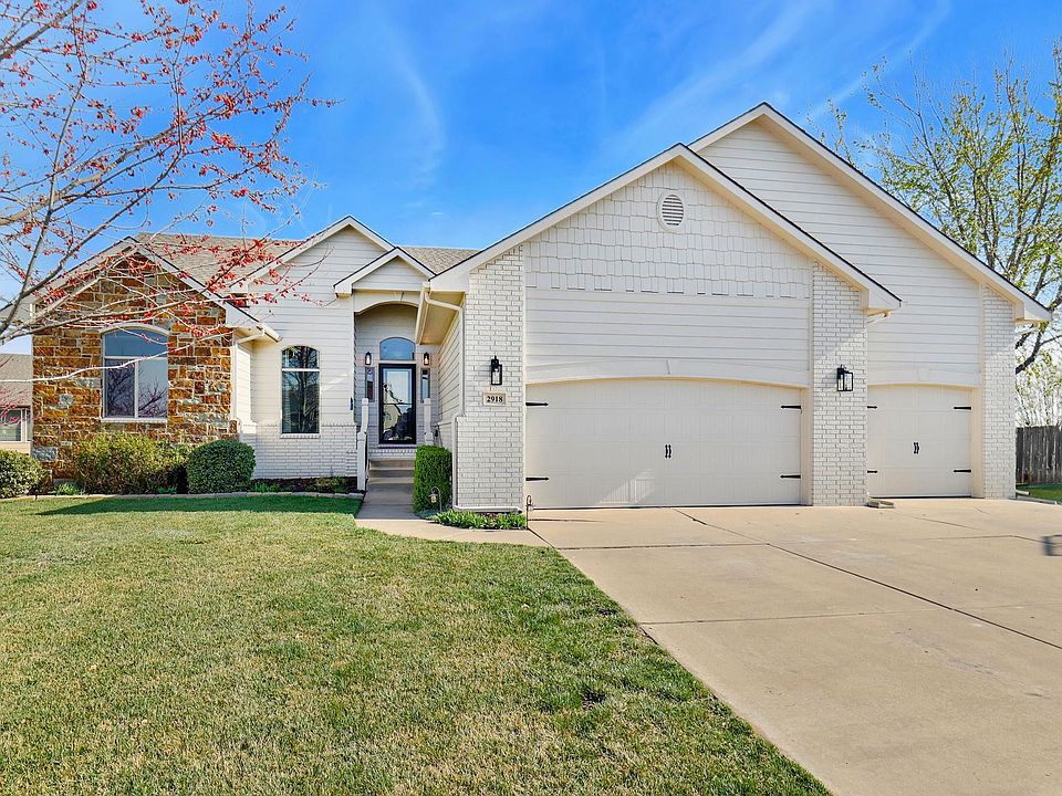 Beautifully Maintained Ranch Home in Maize School District This stunning 5-bedroom, 3-bath, 3-car garage ranch-style home offers a spacious and functional layout with no special taxes! The main floor features a desirable split-bedroom design, an open-concept kitchen with granite countertops, a walk-in pantry, and a convenient main-floor laundry room that connects to the master bath. The master suite includes a luxurious soaker tub, a separate shower, and a private water closet. The walkout basement is fully finished and perfect for entertaining, boasting a huge family room with a cozy fireplace, a wet bar, two additional bedrooms, and another full bath. Fresh new carpet has been added, making this home truly move-in ready. Sellers had the exterior repainted for a clean and bright look. Don't miss this incredible opportunity in the highly sought-after Maize School District!