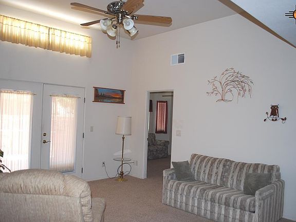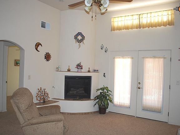 Beautiful Southwest Style home in a 55+ community. Nice size breakfast in the kitchen. Kiva fireplace in the living room. Tile and carpet. Plant shelves and glass blocks add to the charm. 2 nice size bedrooms. Master suite has a large walk-in closet. Garage is an oversized 1 car with room for storage. Front loader washer and dryer. HOA with $150 yearly dues. Wonderfully landscaped with drip system to everything. Front courtyard and large covered patio in the back. Call today for an appointment.