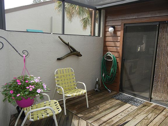 Pride of Ownership show here. Customized unit with front and rear screened courtyards with wood declking.Great for the Florida outdoor life with privacy to your home.Uprgrades and improvements include front and back wood decks, glassed in lanai area with A/C and fan,Front and rear screened/caged courtyards,new skylight in liv.room, water heater,water saver toilets,main bath vanity,newer aplliances,new a/c with increased flow vents.Walk in closets,cathedral ceilings,storage in garage.Amenities include pool and spa,tennis courts,lush tropical landscaping.Pet friendly and NOT age restricted.Come see and owner financing considered.<br/><br/>Brokered And Advertised By: REAL ESTATE MART<br/>Listing Agent: FREDERICK FLIS