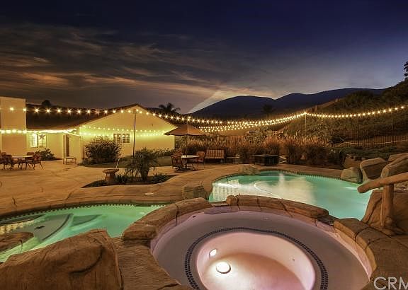 Highly desirable single-story pool home on an over-sized, nearly half-acre, lot. This residence was remodeled and expanded in 2007. Large eat-in kitchen with granite counter tops, center island, and custom wood cabinetry. The family room with fireplace is open to the kitchen. Large dining room area with tray ceiling and custom accent lighting. The master suite is generous in size with vaulted ceilings and a walk-in closet. The sophisticated master bath is complete with dual sinks, a jetted tub and sizable separate shower with rainfall shower head feature. Three additional guest bedrooms, one with its own private bath. The resort-like grounds are sure to impress with an enormous outdoor kitchen, 4-hole putting green, and yards of string lights draped throughout the idyllic setting. The swimming pool is the personification of resort-style living with two water slides, numerous waterfalls, and color-changing lights. The yard is the epitome of outdoor entertaining. Quiet cul-de-sac location which is close to award-wining schools and world-class beaches. Enjoy the miles of local hiking trails to experience California living at its finest.