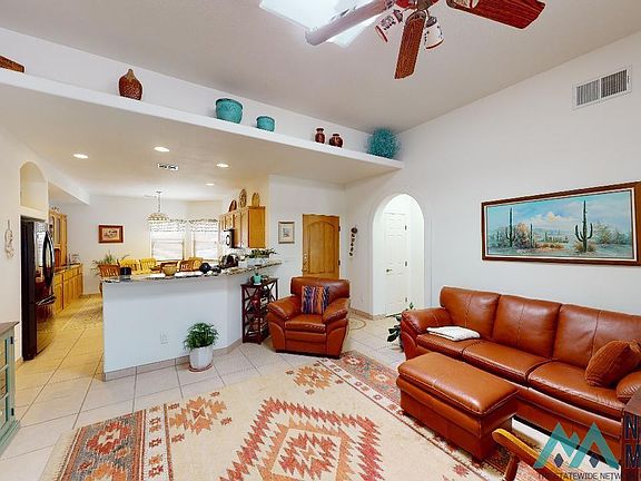 SW Pueblo-Style Stucco Home in Beautiful condition where Pride of Ownership shows on this 2 bedroom 2 bath, 1157 sq.ft. home,built in 2007. This home features a split/open floor plan with a Pella sliding door (installed 2018) from the living room to the backyard covered patio, tiled floors and carpeted bedrooms. Kitchen counter tops and backsplash have been updated to granite and marble travertine as of 2018. You'll find a dedicated office and 2 car garage with laundry facilities along with a Tamarack exhaust system. Exterior painted, roof coated and stucco updated as needed in 2019. Roof recoated 2021. Enjoy the amazing views from the roof top deck along with the beautiful starry nights. This is an HOA 55+ Community. Deming/Luna County offers Rockhound & SpringCanyon State Parks for hiking, rock hounding. Deming is located off of I-10 and less than an hours drivefrom Las Cruces, NM or Silver City, NM.