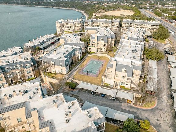Resort Living on Lake Travis! FURNISHED! Lake Travis Views from the 1st and 2nd floors! Walking distance to the Tram which is connected to a day dock, the stone path down to Lake Travis, swimming pool, workout gym, and tennis courts! Plenty of parking! This spacious condo (totally feels like a townhome!) NO ONE above or below you! Only connected on the side walls. This spacious condo offers an open kitchen looking over the large living area with tons of natural light, high ceilings, a fireplace, and a private patio! Beautiful hardwood and slate floors provide warmth to the overall area. A separate laundry room, pantry, and half bathroom complete the downstairs! Tons of storage space! Upstairs, you will find 2 very spacious bedrooms with en-suite bathrooms, double vanities, and large walk-in closets. Both bedrooms have private verandas and the primary suite presents incredible lake and hill country views! The HOA grounds contain two swimming pools, a hot tub, a sports court, and lighted tennis courts. HOA monthly fee includes water, trash, standard TV, and standard Internet. Great views and minimal maintenance make this your perfect home on Lake Travis! Welcome Home! This could also be a rent-a-room property for $1500/month. The bedroom has a private bathroom.