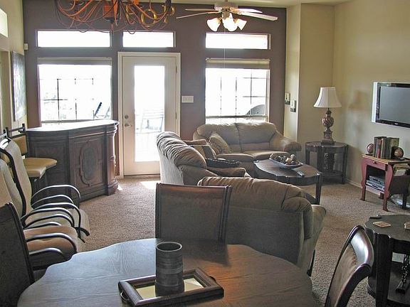 Beautiful lake view condo on Lake Travis. This condo complex has it all from 2 pools and 2 hot tubs to day dock, tennis courts, fitness center, sport court, and more. Beautiful sunsets all year round. Great open floor plan condo with balcony. Carpet and slate through out. Black appliances and granite tile in kitchen with a breakfast bar. Come see this stunning lake view condo!!