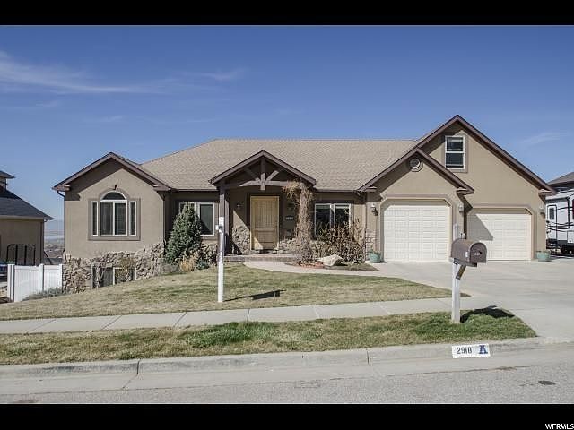 Views! Views! Views! This home is a perfect balance of rustic and function. This spacious rambler has gorgeous hardwood floors, the kitchen has never ending views of the valley and Willard Bay, 3 fireplaces, master suite w/ lg corner tub, walk in shower, dbl sinks, Fully finished walk out basement with 10 ft ceilings and an amazing theater room, New Solar System and the seller is paying it off at closing, fully fenced yard with 2 decks to enjoy Utah's amazing sunsets. Bring your family and make this house your home! Buyer to verify all info.