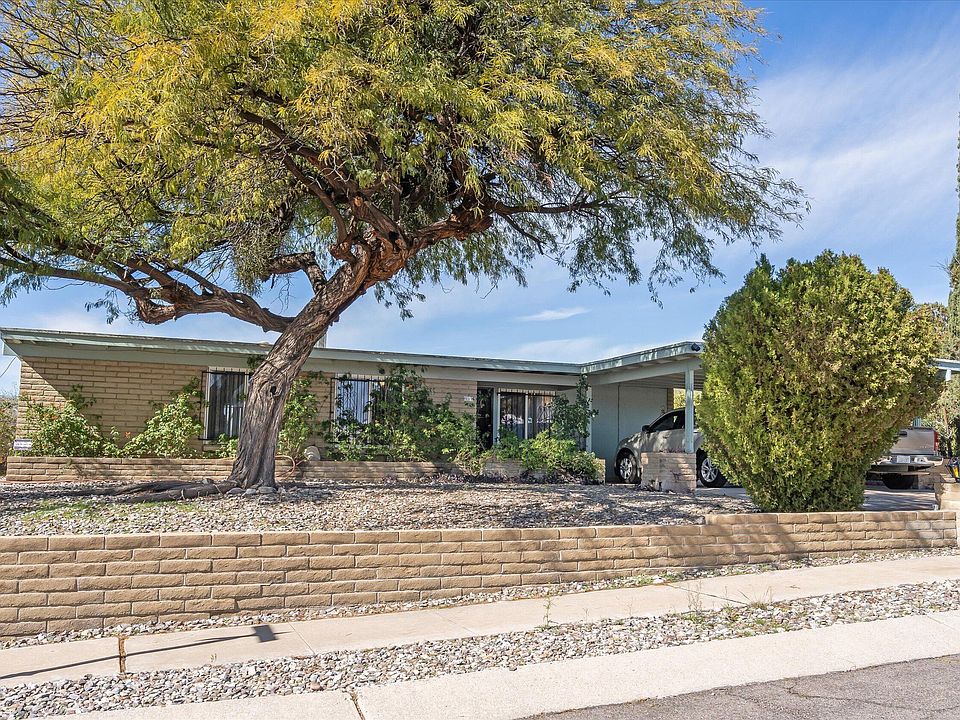 This quaint East-side brick home is a 4-bedroom, 2-bathroom located on a quiet cul-de-sac in the desirable Hearthstone Hills neighborhood. The open-concept dining room and kitchen provide plenty of space for entertaining. Spacious bedrooms, and natural light create a warm and inviting atmosphere. The home features no carpet, ceramic tile, and a bonus additional room with laundry. The backyard is perfect for outdoor gatherings, with a sizable patio, beautiful citrus trees, and a garden bed of garlic. Other amenities include a 2-car carport, NO neighbors to the rear, and a walking trail nearby. Take advantage of the opportunity to make this house your home! Home to be sold ''AS IS''. Needs some cosmetic updating.