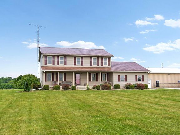 Wow! That's all you can say with a view like that from your front porch or back patio. Inside you will find 4 bedrooms which includes a large master suit with jacuzzi tub, 2.5 bathrooms, a large office or second living room, formal dining room and an eat in kitchen, and large 4 seasons room new in 2017 is just a step down off of the kitchen. Step outback onto your patio built in 2019 which includes a built in fire pit and decorative fire place. Look a little further out onto 5 acres which includes 6 water and electric sticks, one more beside the driveway. At the end of the long driveway you will park next to a 30x40 barn with a concrete floor and outlets galore inside, built in 05.