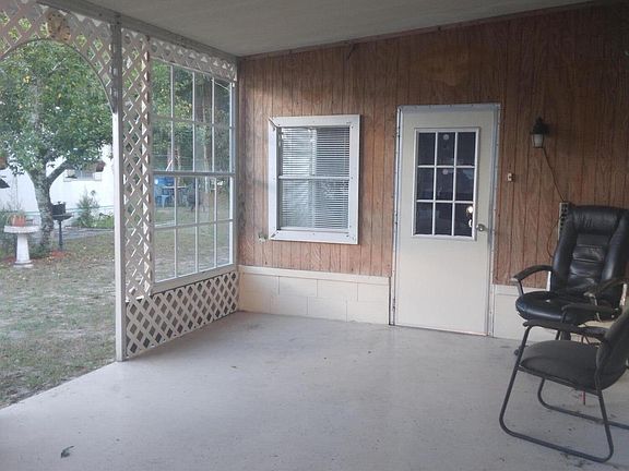 Active Under Contract-Accepting back up offers. OWN YOUR OWN LAND-NO HOA and NO LOT FEE! Great for investors, snowbirds or the family. This home has tons of potential with 3 bathrooms and a large storage room that can be converted into an additional room or an outdoor area. The home features an unique entryway that is completely closed in, air conditioned and has a bathroom. It also has an additional electric panel and internet which makes this area the perfect place to become an in law suite, home office or workshop. The inside of the home has a large bedroom with 2 separate bathrooms. The eat-in kitchen/dining area has sliding glass doors leading to a screened in porch. The living room has a nice wall bay window that brings in natural light. Outside there is a storage shed with electric and a private backyard with no rear neighbors. The great location is minutes from I75.